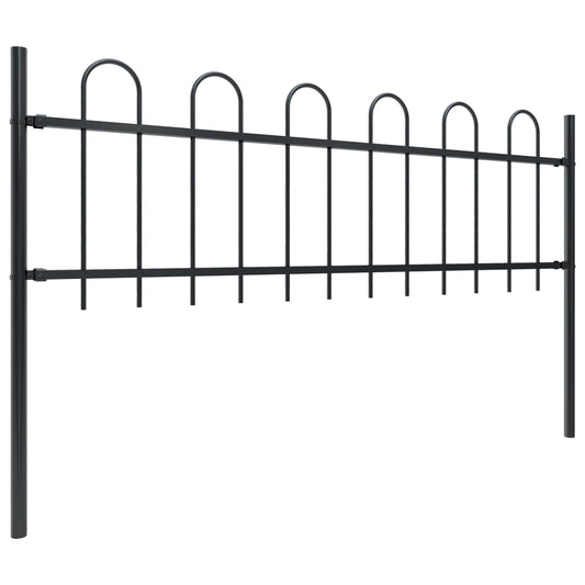 Zahradní plot s obloučky ocelový 8,5 x 1,2 m černý