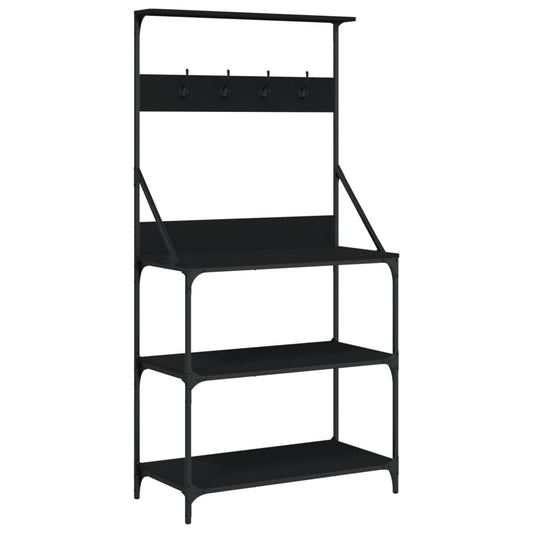 Pekařský regál s háčky 4patrový černý kompozitní dřevo