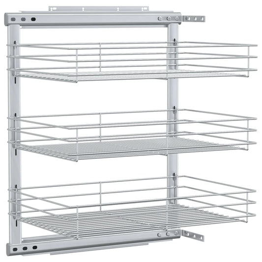 3patrový výsuvný kuchyňský drátěný koš stříbrný 47 x 35 x 56 cm